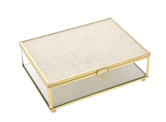 Κουτί αποθήκευσης, μπιζουτιέρα απο γυαλί, μέταλλο και ύφασμα. Διαθέσιμο σε δύο διαστάσεις.