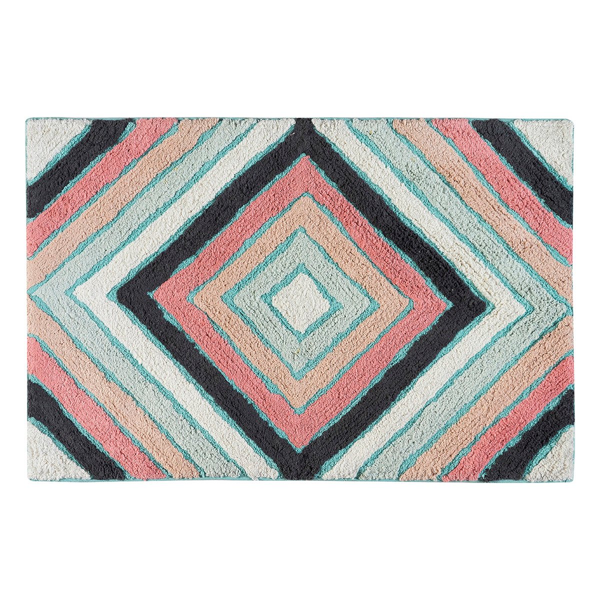 Αντιολισθητικό πατάκι μπάνιου σε παστέλ αποχρώσεις με εντυπωσιακό γεωμετρικό μοτίβο, διάστασης 60x90cm. Είναι κατασκευασμένο από 100% βαμβάκι.