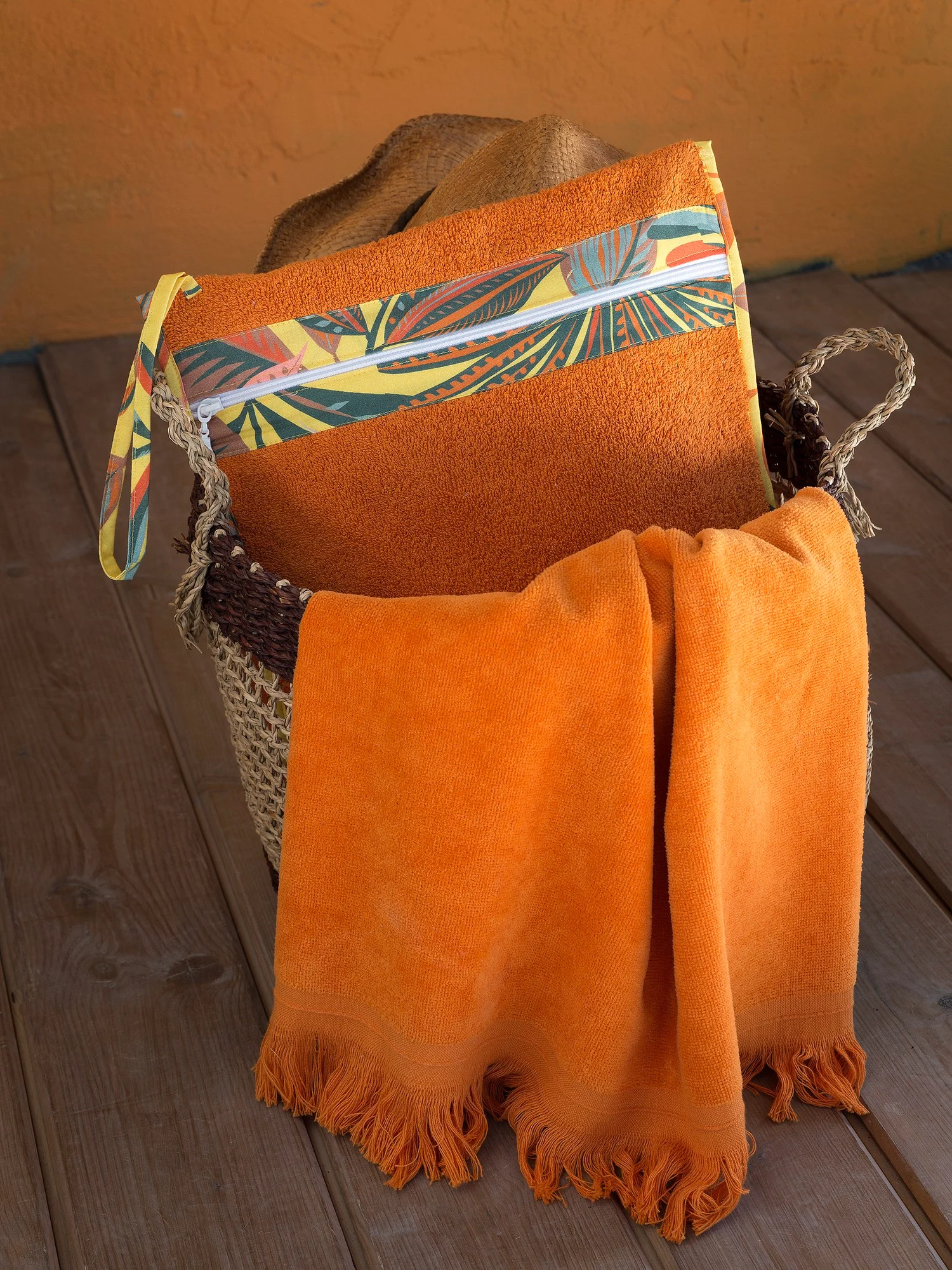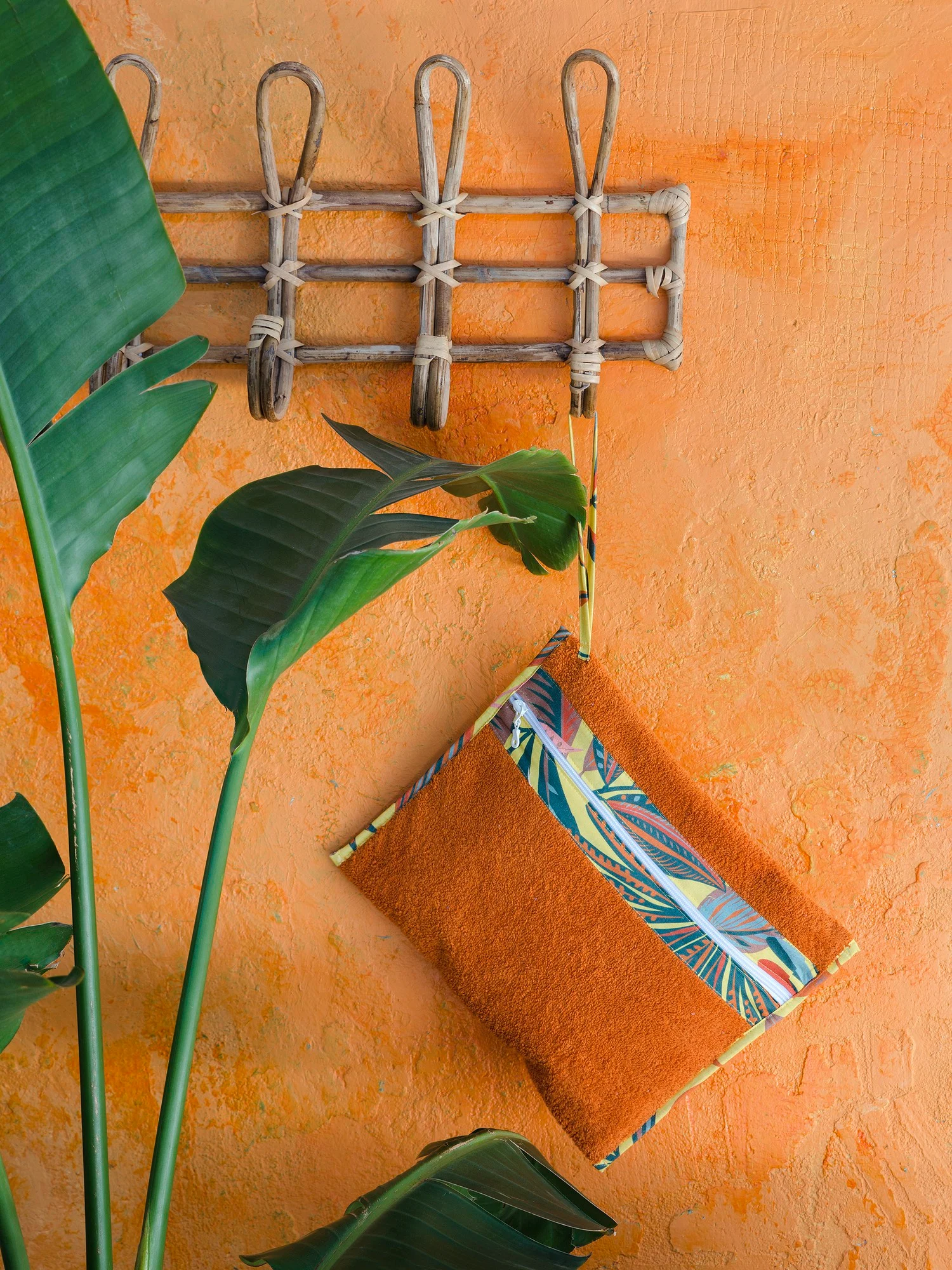 Το βαμβακερό νεσεσέρ θαλάσσης Satya έχει ζεστό πορτοκαλί χρώμα και είναι διακοσμημένο περιμετρικά με βαμβακερή φάσα με digital print μοτίβο σε στιλ jungle, ένα trend πολύ καλοκαιρινό και ιδανικό για την παραλία. Είναι ιδιαίτερα πρακτικό καθώς διαθέτει αδιάβροχη επένδυση στο εσωτερικό του που μας επιτρέπει την ασφαλή φύλαξη του βρεγμένου μαγιό. Μια εξαιρετικά fashionable και πρακτική επιλογή για το καλοκαίρι που μπορεί να συνδυαστεί με την matching τσάντα θαλάσσης και την πετσέτα Satya δύο όψεων, ώστε να απολαύσετε τις βουτιές σας με ακόμα περισσότερο στιλ.
