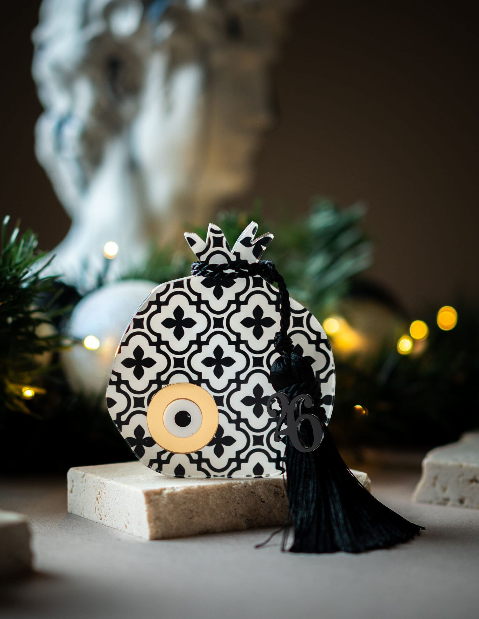 Επιτραπέζιο Γούρι Ρόδι Μοτίβο Ασπρόμαυρο 2026 από την εταιρεία Nous Concept.