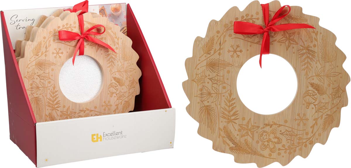 Χριστουγεννιάτικος δίσκος σε σχήμα στεφανιού, διάστασης 30x30x1cm