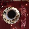 Χριστουγεννιάτικο τραπεζομάντηλο σε κόκκινες, πράσινες και λευκές αποχρώσεις με διακριτική χρυσή ρίγα. 100% βαμβακερό από την Ιταλική εταιρεία Ever Best.