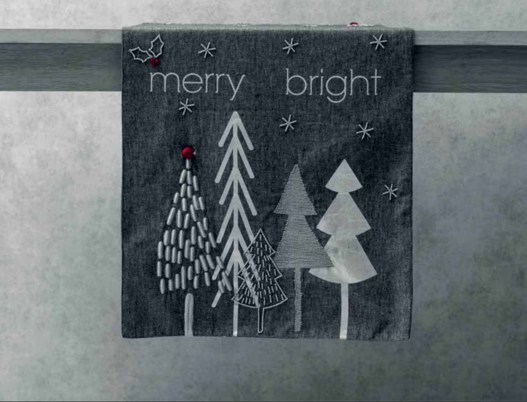 Ενα Runner με τυπωμένα αλλα και κεντημένα έλατα με φυτίλι περιμετρικά.