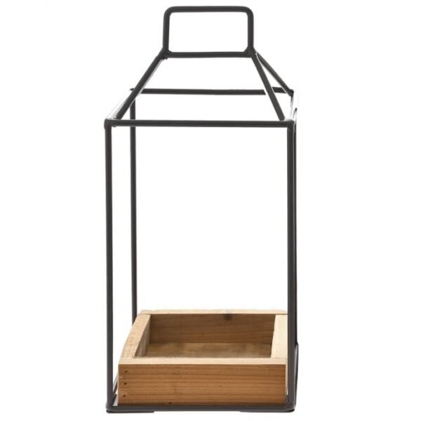 Μεταλλικό φανάρι σε μαύρο χρώμα με ξύλινη βάση, διάστασης 20x20x45 cm