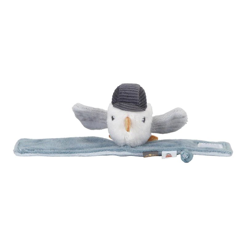 Γενικά αυτό το μαλακό βραχιόλι με κουδουνίστρα θα ενθουσιάσει το μωρό σας. Πιο συγκεκριμένα, ο χαδιάρης γλάρος πάνω από το βραχιόλι είναι έτοιμος για κίνηση! Ωστόσο, υπάρχουν ακόμα περισσότερα πράγματα για εξερεύνηση! Ειδικότερα, τα τσαλακωμένα μέρη, οι ετικέτες και ένας μικρός κόμπος ενθαρρύνουν το πιάσιμο και το άγγιγμα. Απλώς δέστε το γύρω από τον καρπό του μικρού σας και αφήστε τη διασκέδαση να αρχίσει. Το συγκεκριμένο Υφασμάτινο Βραχιολάκι Κουδουνίστρα συνιστά ιδανική επιλογή κι ένα υπέροχο παιχνίδι για ένα χαρούμενο μωρό!