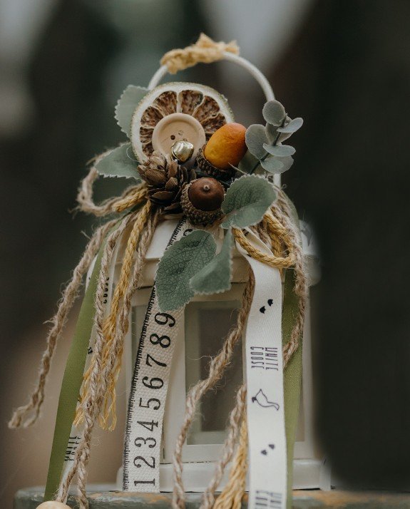 Φαναράκι Forest με στοιχεία του δάσους και χρωματιστές κορδέλες από το White Goose.