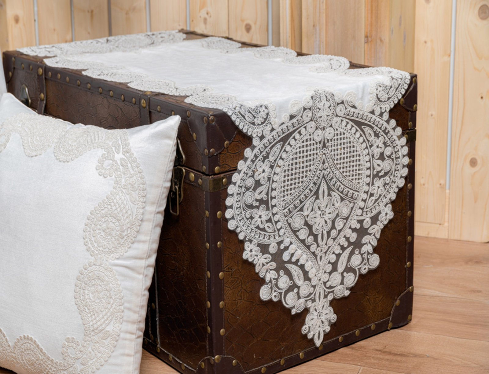 Τραβέρσα από 100% Πολυεστέρα με μεταξωτό κέντημα και χειροποίητη δαντέλα