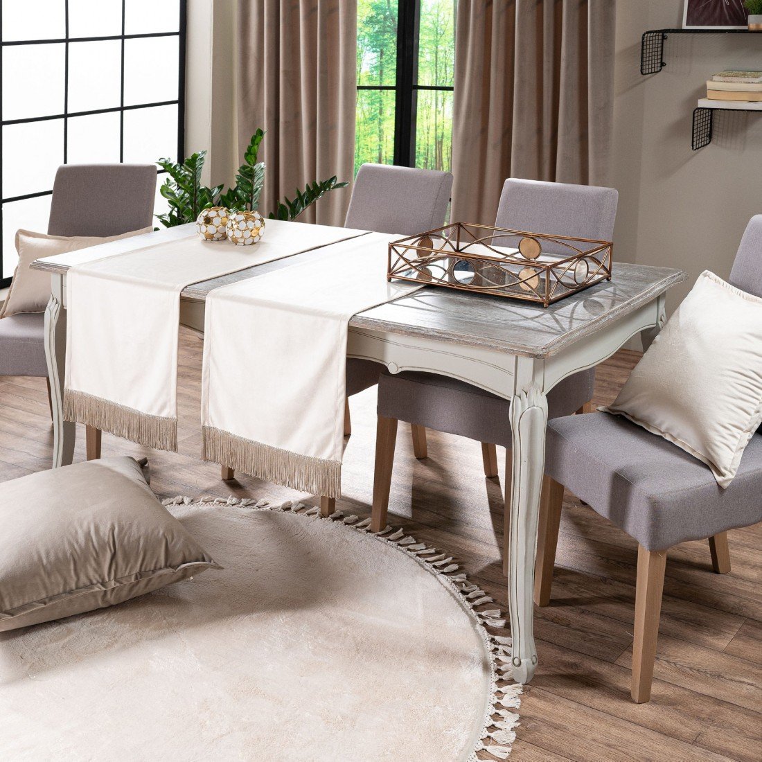 Βελούδινο ράνερ μονόχρωμο με κρόσσια σε δύο διαστάσεις