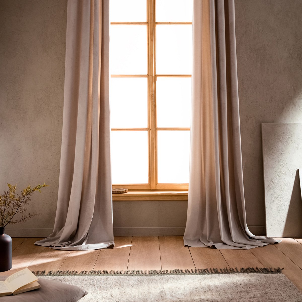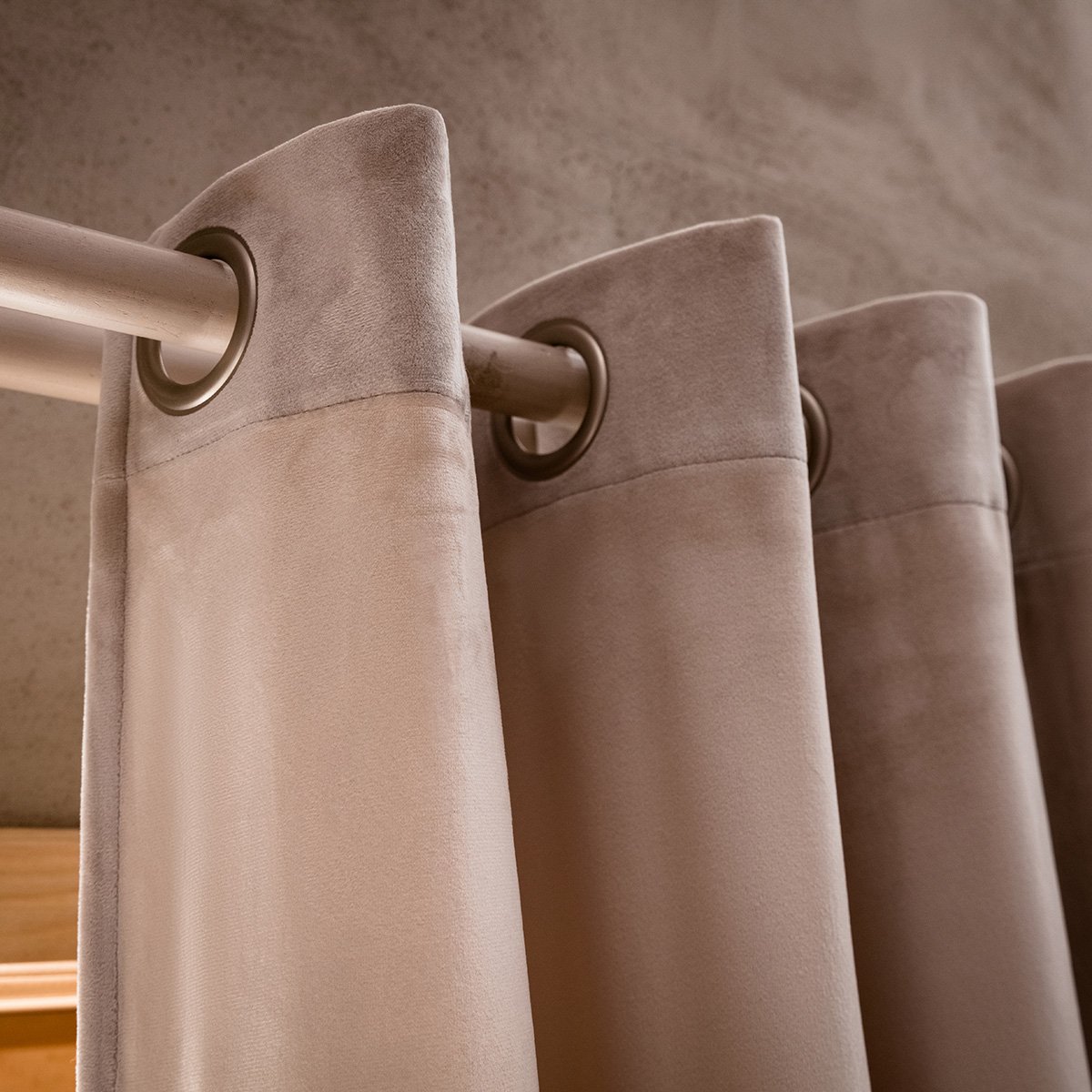 Μονόχρωμη κουρτίνα Winter από απαλό βελούδινο ύφασμα. Μεσαίας σκίασης, ιδανική για ριντό. Έτοιμη ραμμένη με ματ ασημί τρουκς.