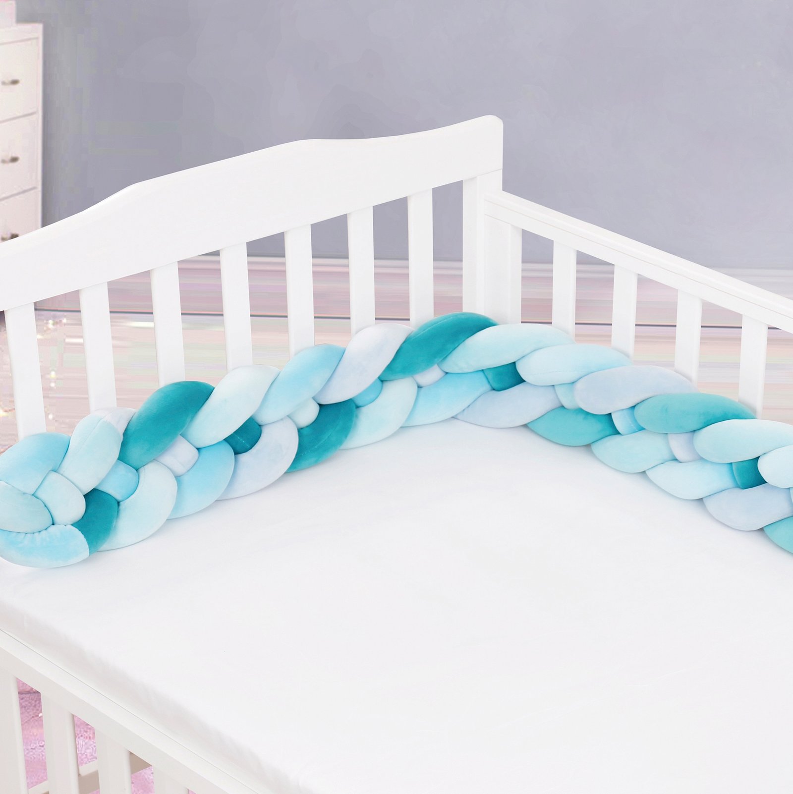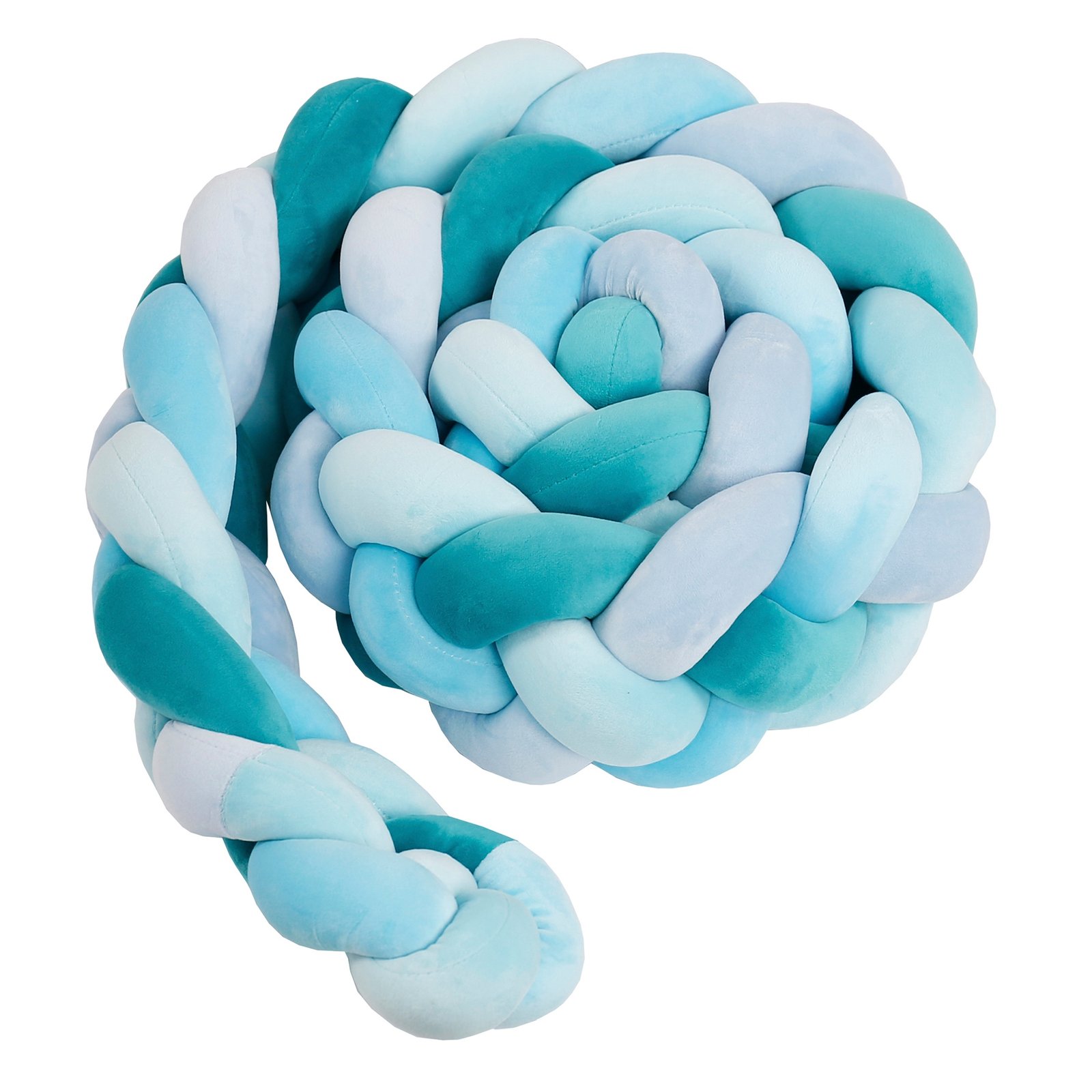 Πάντα Κούνιας Πλεξούδα 15x220com TANGLE CYAN της σειράς Kids Décor από εξωτερικό ύφασμα 100% polyester velour και εσωτερική γέμιση polyester-spandex.