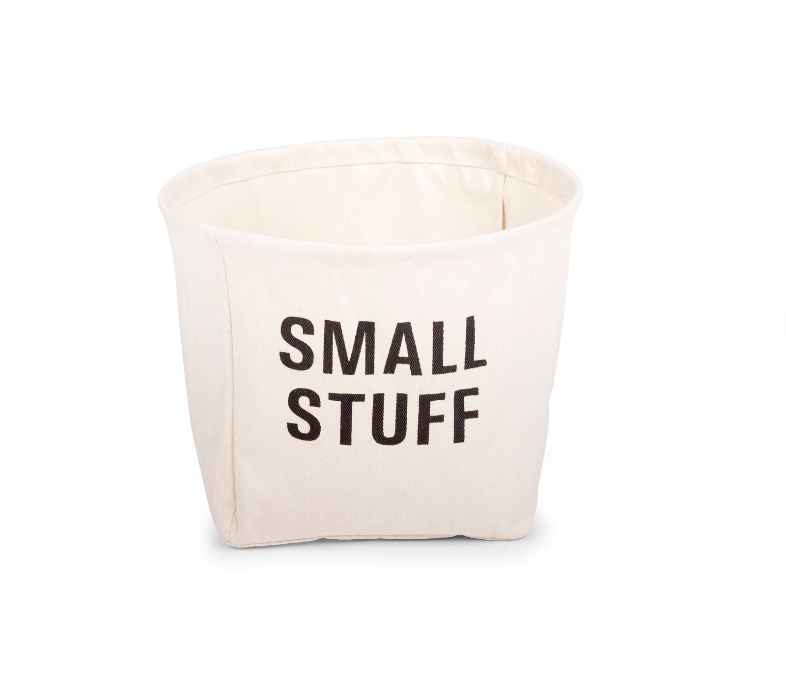Αυτό το όμορφο καλάθι αποθήκευσης έχει αποτυπωμένο τη λεζάντα: SMALL STUFF.