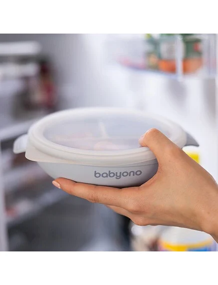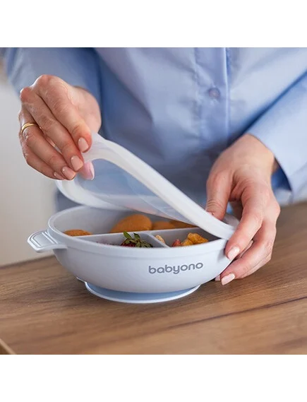 Με το πιάτο σιλικόνης της Babyono, το παιδί σας θα αγαπήσει την ανεξαρτησία του να τρώει από το δικό του ειδικό πιάτο, και εσείς θα αγαπήσετε την ευκολία που φέρνει στην καθημερινή σας ρουτίνας. Ιδιαίτερα χαρακτηριστικά του αποτελούν αφενός το καπάκι και οι βεντούζες για να μην ξεκολλάει και να αποτρέπονται τα ατυχήματα και αφετέρου 3 χωρίσματα για να σερβίρονται οι τροφές.