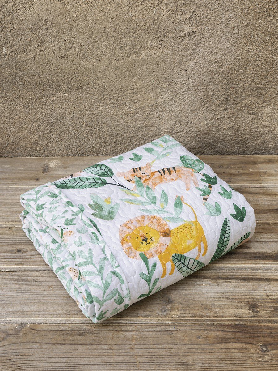 Παιδικό κουβερλί με θέμα ζούγκλα σε διάσταση 160 x 240 cm.