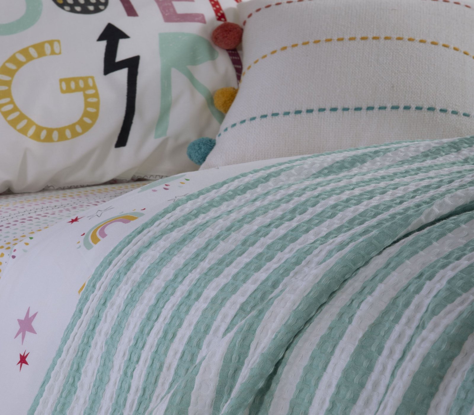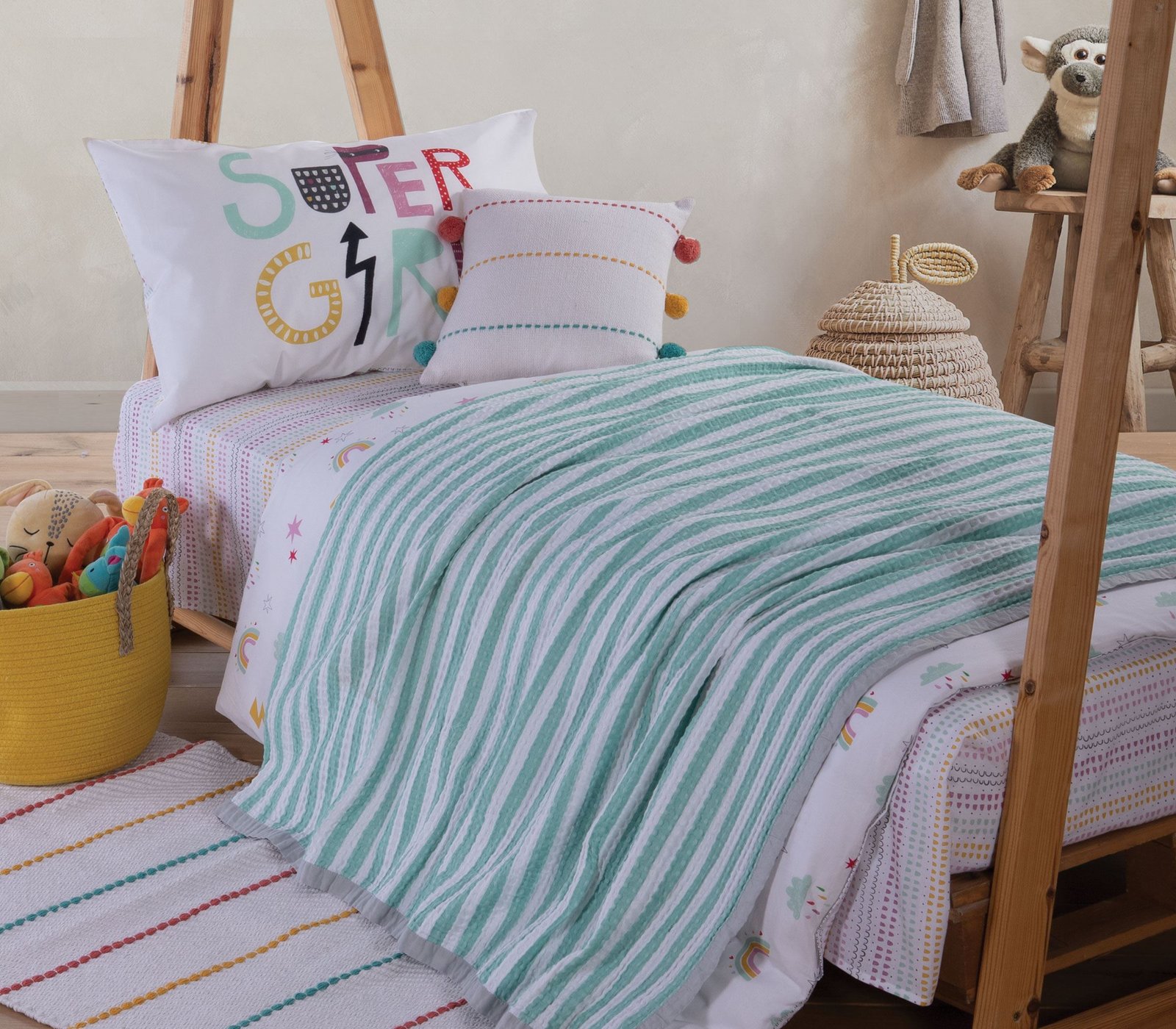 Παιδική κουβέρτα με ριγέ σχέδιο σε χρώμα μέντας