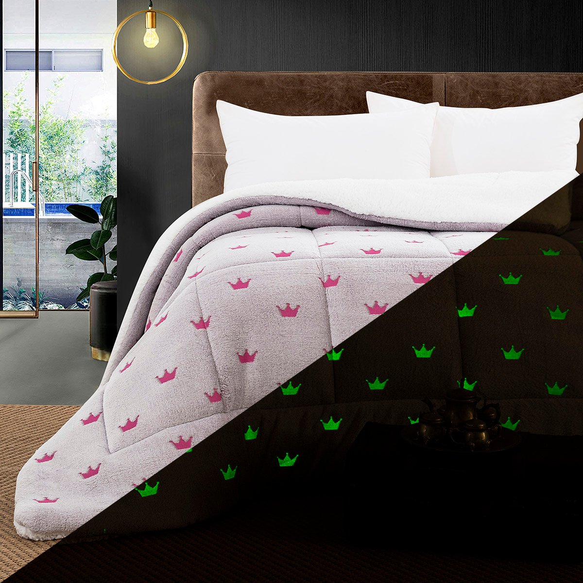 Το νέο κουβερτοπάπλωμα Glow από την εταιρεία Beauty Home αποτελείται από γούνα sherpa και φωσφορίζει στο σκοτάδι! Η σύνθεσή του αποτελείται από 100% πολυεστέρα και αποτελεί ιδανική επιλογή για να διακοσμήσετε το δωμάτιο του παιδιού σας και να προσφέρει ζεστασιά τις κρύες νύχτες του χειμώνα.