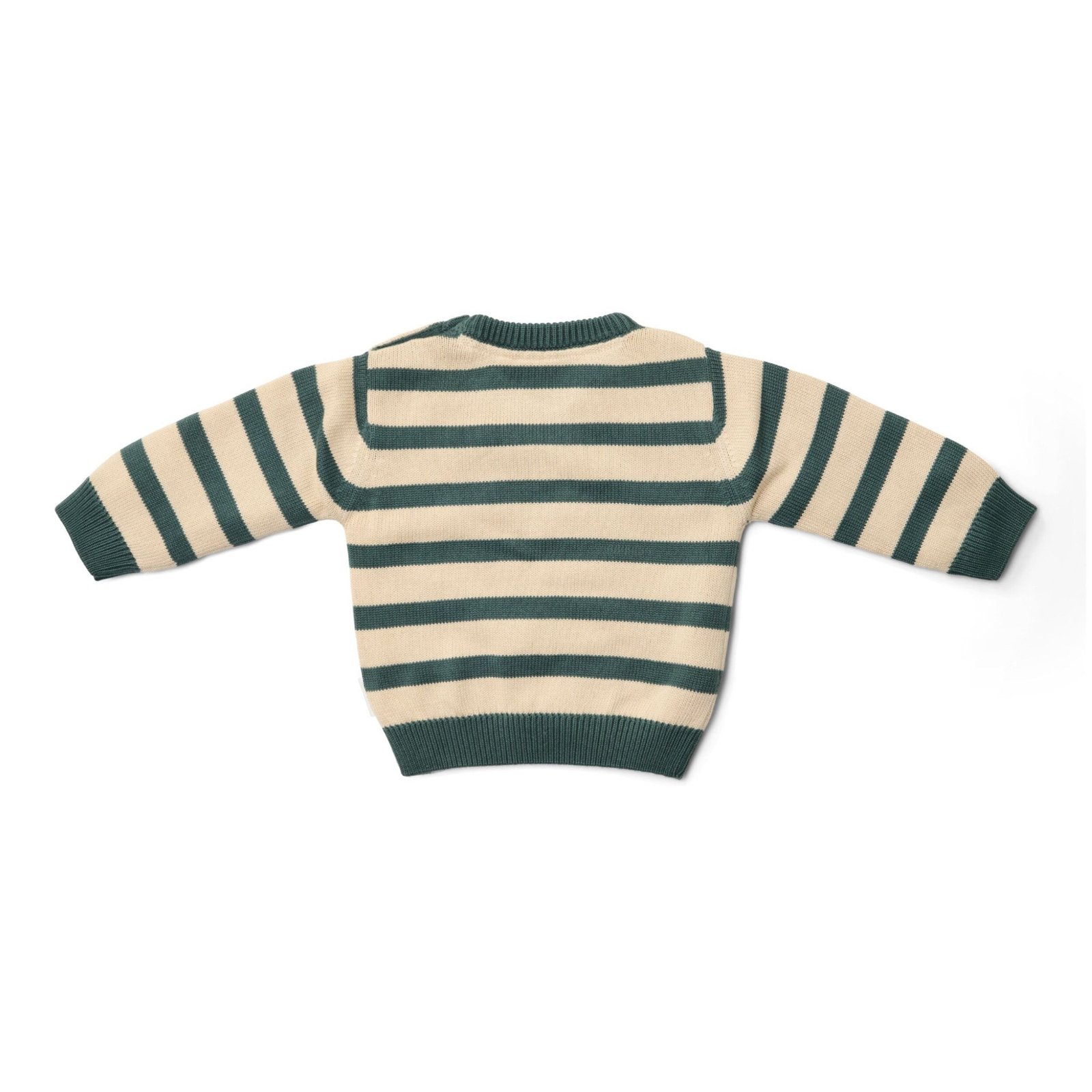 Το υπέροχο αυτό πλεκτό πουλοβερ θα ενθουσιάσει τους μικρούς μας φίλους. Οι δίχρωμες ρίγες σε πράσινο και κρεμ χαρίζουν μια δροσερή πινελιά, ενώ τα κουμπάκια στο γιακά κάνουν το ντύσιμο εύκολο και πρακτικό!