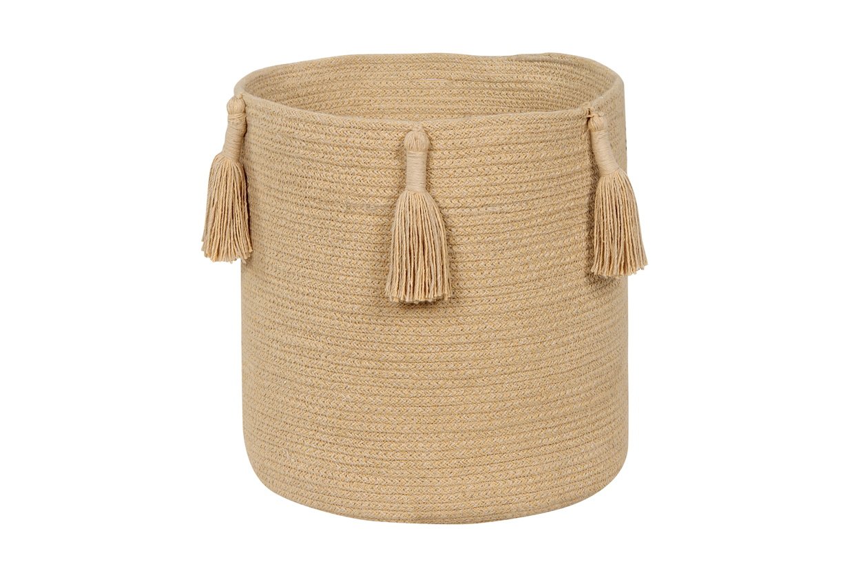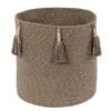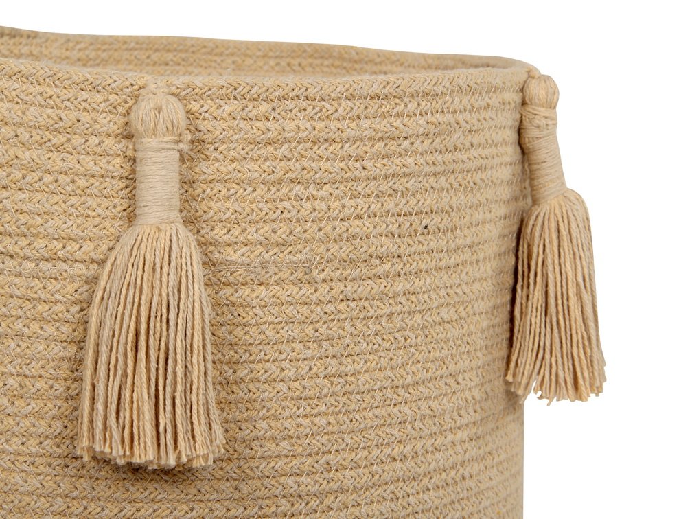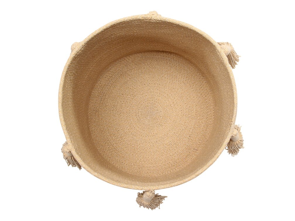 A multi-purpose basket for everything! Very versatile and designed to match the entire Cotton Woods collection as well as the previous collections. It has finishes in bicolour cotton melange braided cord (in light and dark olive green) to achieve a changing effect, like with nature’s hues. It comes in the ideal size to store and organize allsorts of objects, and is finished with decorative handmade tassels along the edge.