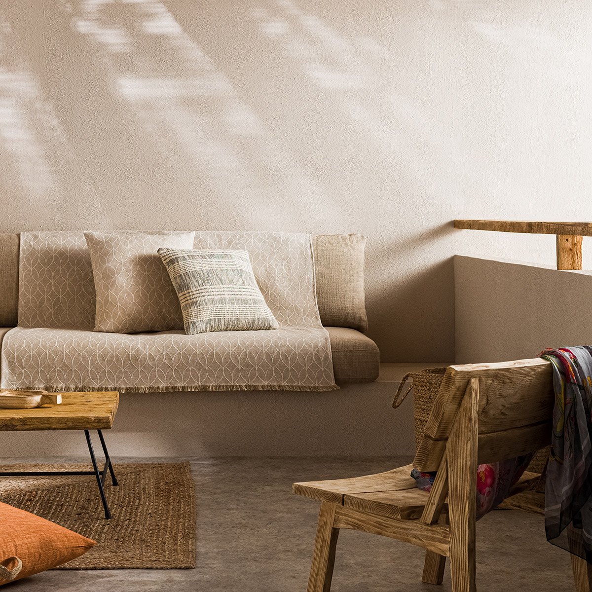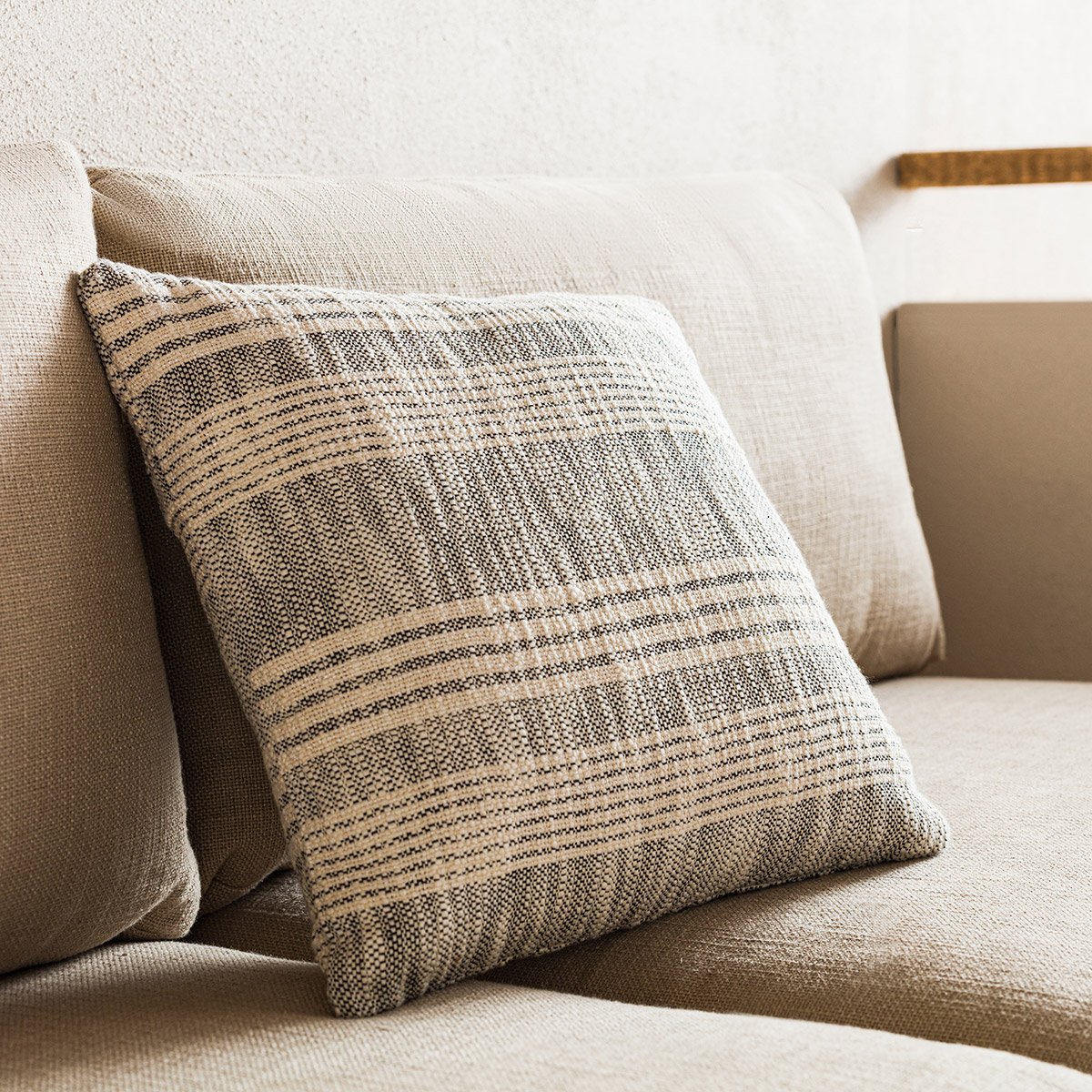 Στο διακοσμητικό μαξιλάρι Zayn αποτυπώνεται ένα υφαντό γραμμικό ανάφλυφο σχέδιο απο βαμβακερά νήματα σε Βαμβακερό ύφασμα.