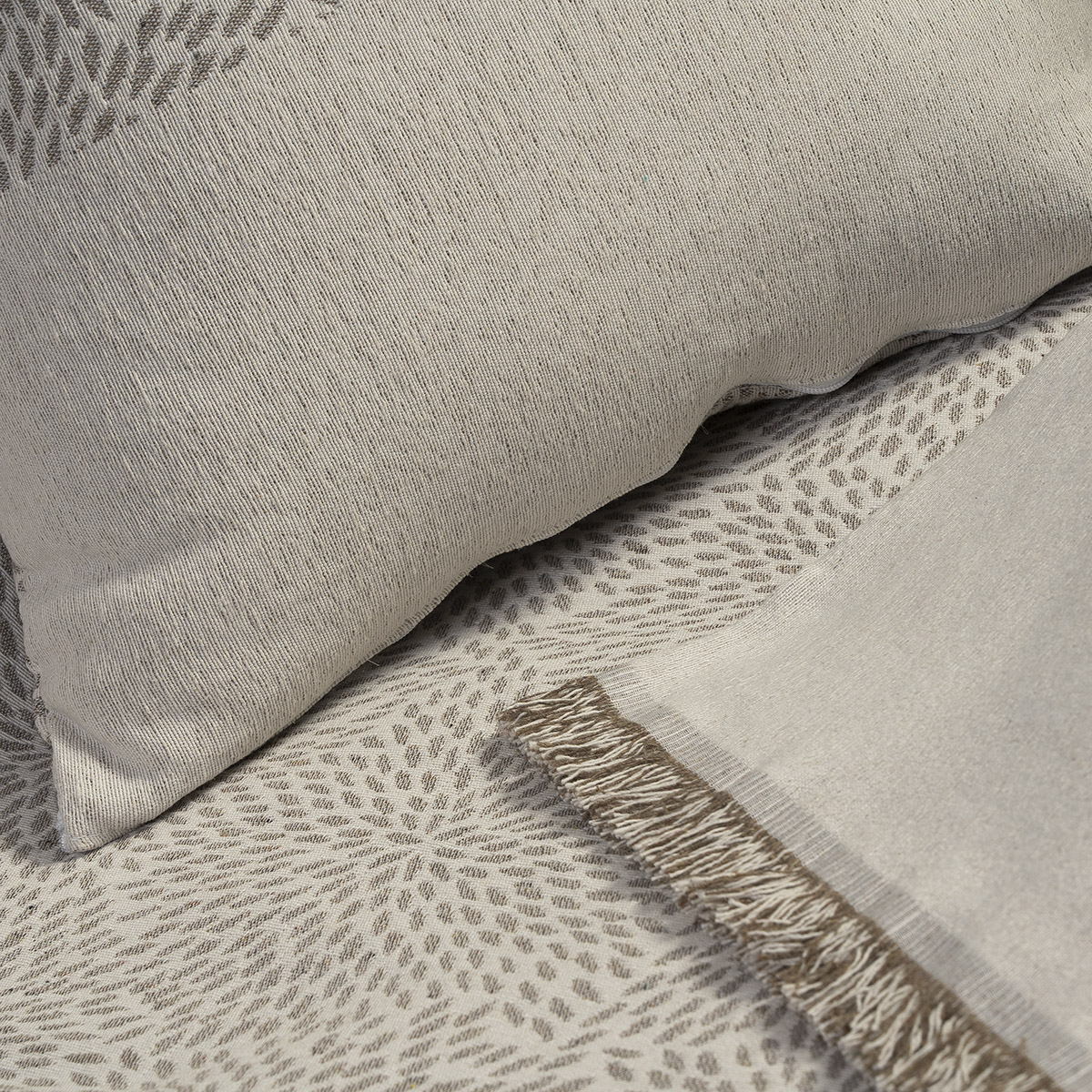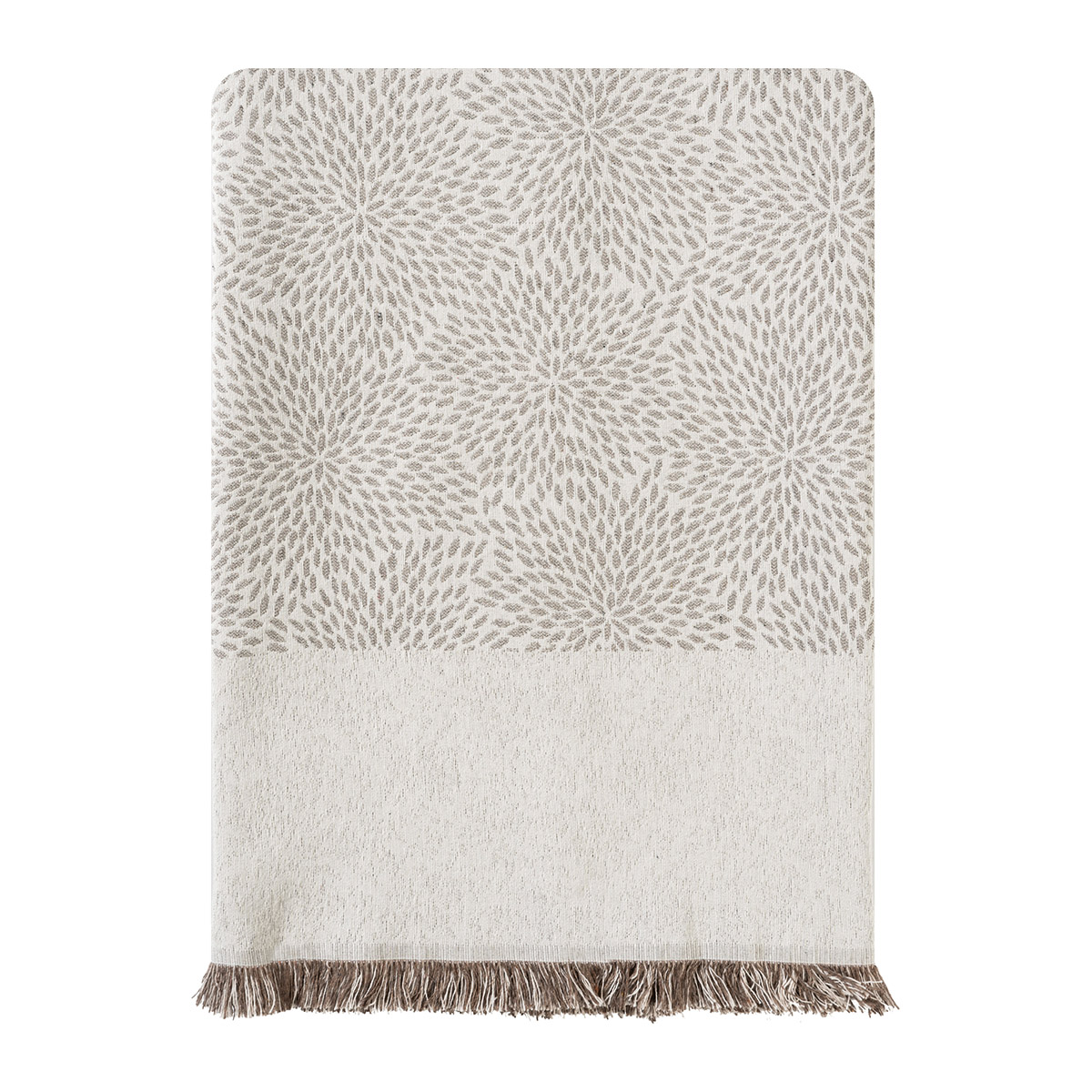 To ριχτάρι Dot Flower είναι δίχρωμο με γεωμετρικό σχέδιο στην ύφανση του. Διακριτικό κρόσσι 2cm στις δύο πλευρές.
