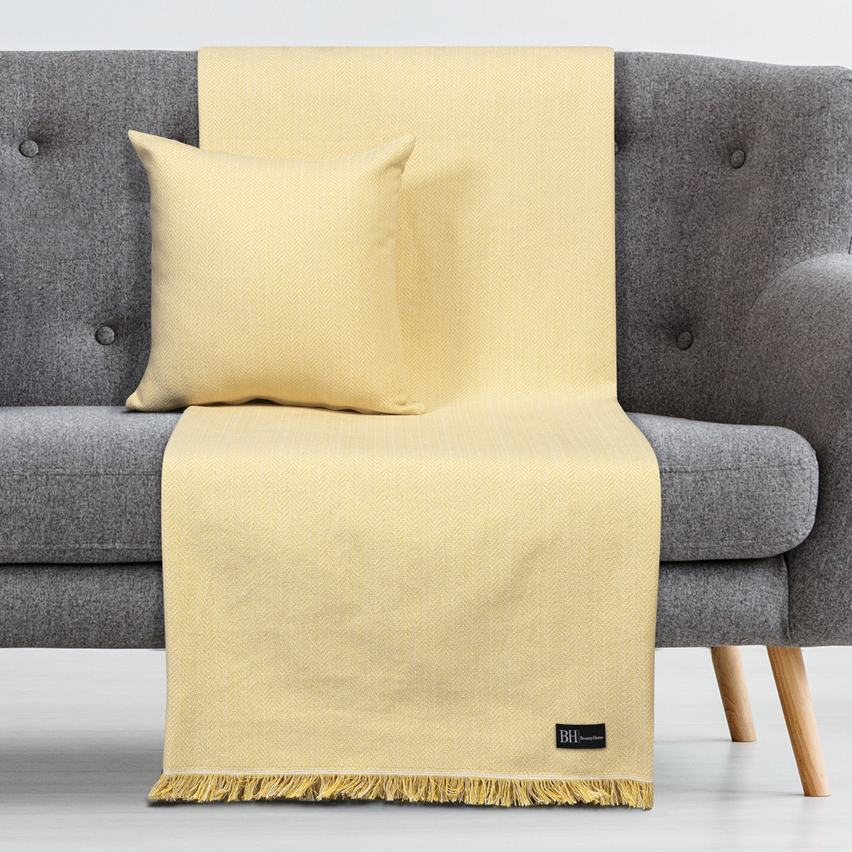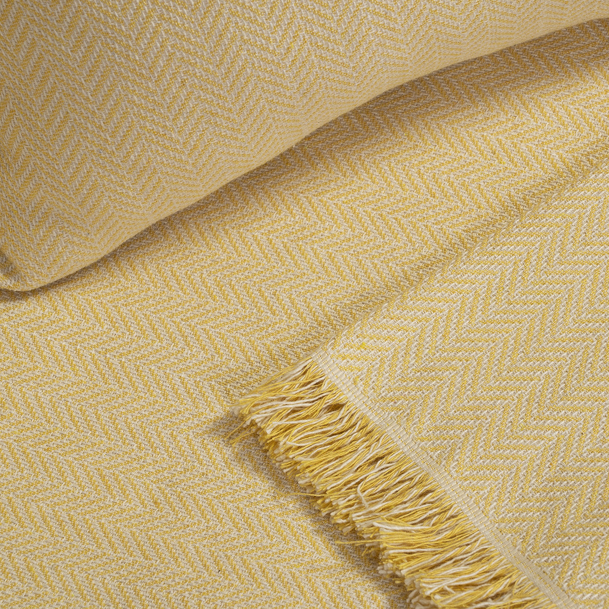 To ριχτάρι Fishbone είναι μονόχρωμο με σχέδιο ψαροκόκαλο στην ύφανση του. Διακριτικό κρόσσι 2cm στις δύο πλευρές.