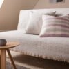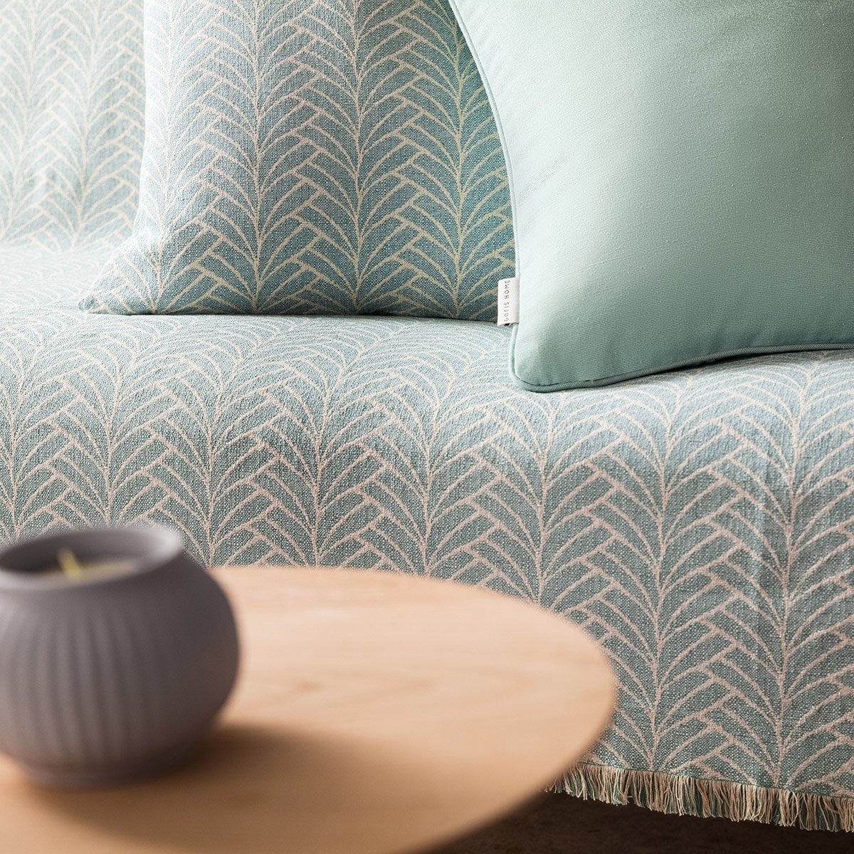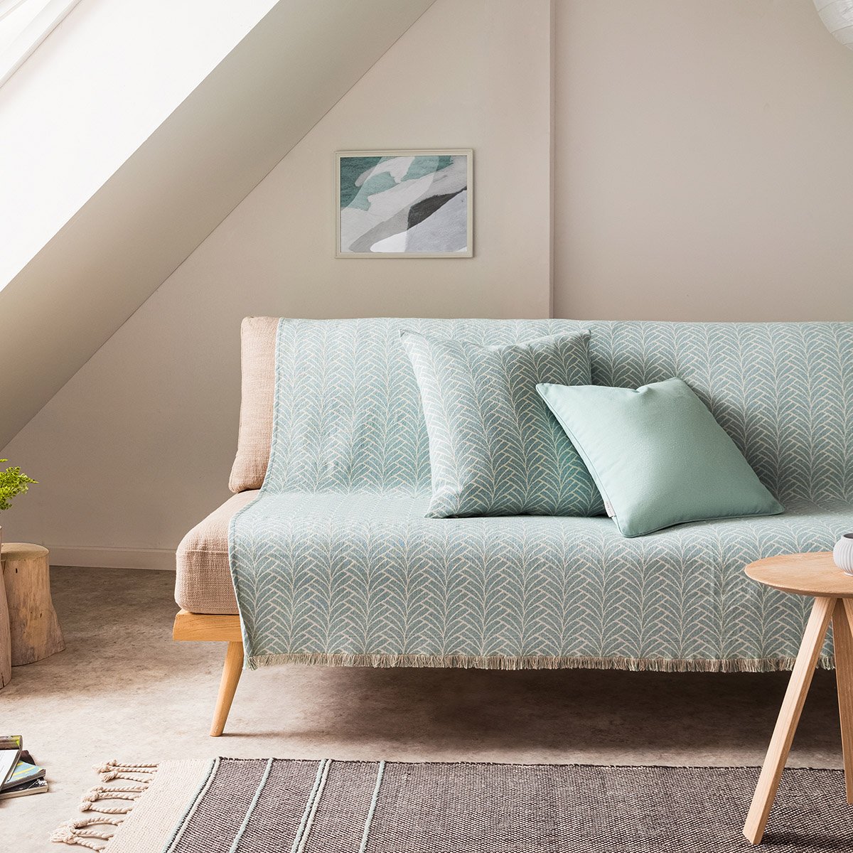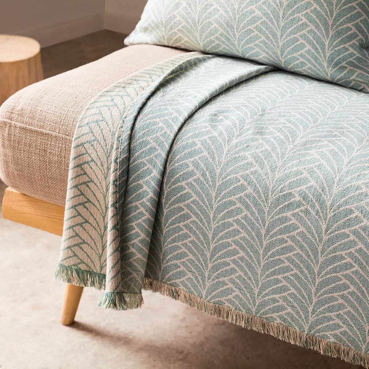 To ριχτάρι Seashell είναι δίχρωμο με σχέδιο art deco στην ύφανση του, διπλής οψης. Κατασκευασμένο από 100% πενιέ βαμβακερά νήματα που αποτρέπουν την δημιουργία κόμπων. Διακριτικό κρόσσι 2cm στις δύο πλευρές.