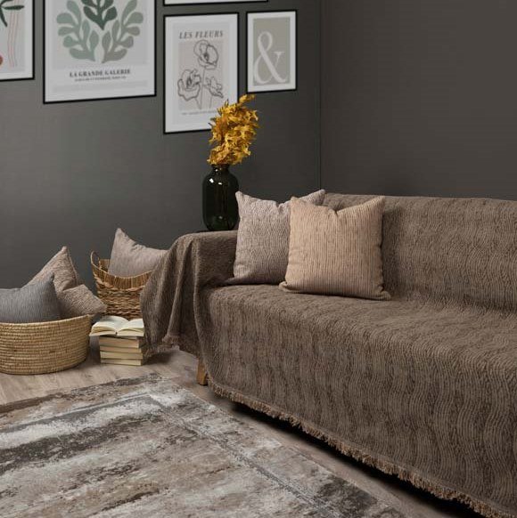 Tracy ριχτάρι με Chenille νήμα και ανάγλυφο σχέδιο. Διατίθεται σε τρεις αποχρώσεις, μπεζ, καφέ και elephant καθώς και σε τρεις διαστάσεις (175x180cm, 175x240cm,175x300cm). Αποτελείται από 70% Ακρυλικό 10% Πολυεστέρα και 20% Βαμβάκι.