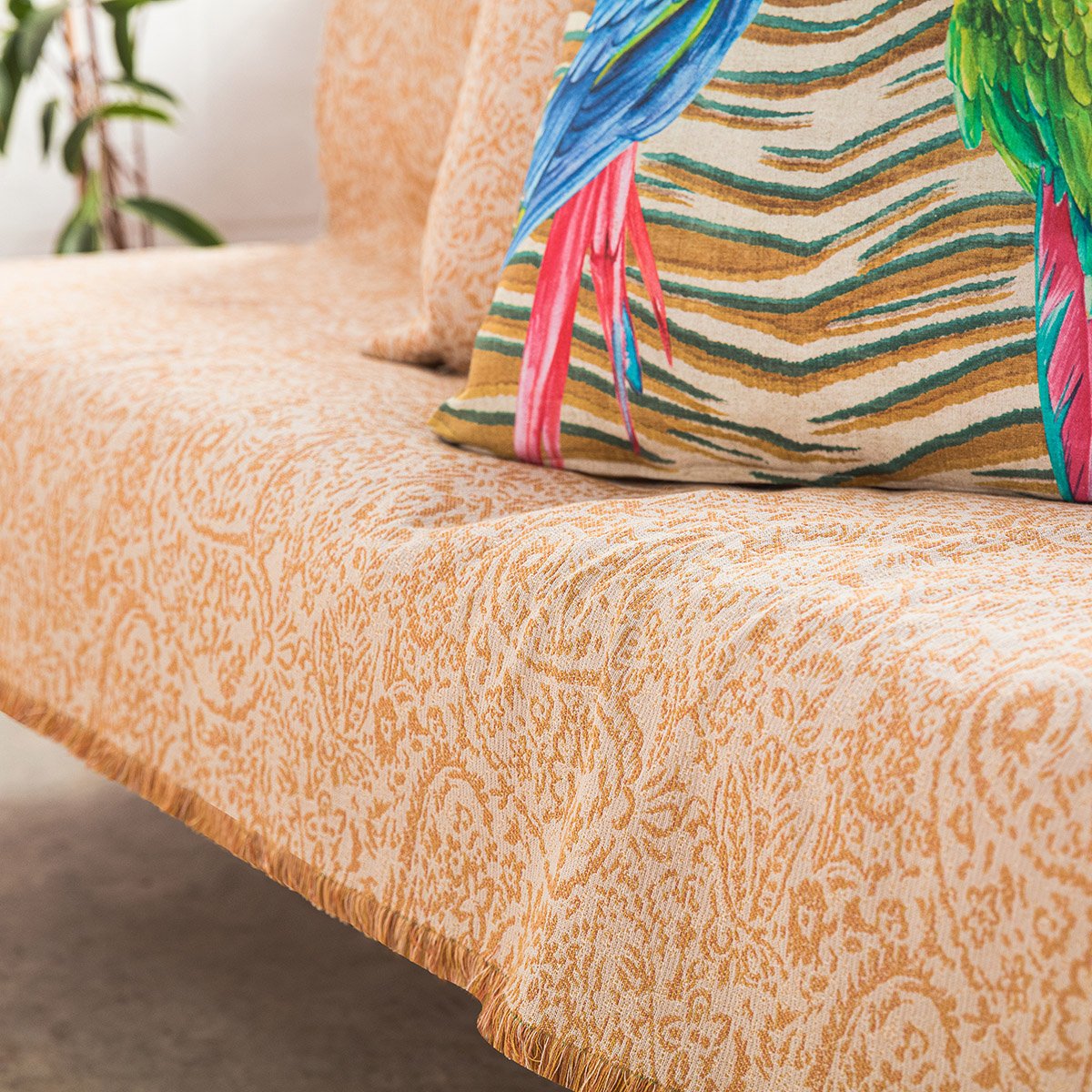 To ριχτάρι Emerald είναι δίχρωμο με σχέδιο έθνικ λαχούρι στην ύφανση του, διπλής οψης. Κατασκευασμένο από 100% πενιέ βαμβακερά νήματα που αποτρέπουν την δημιουργία κόμπων. Διακριτικό κρόσσι 2cm στις δύο πλευρές.