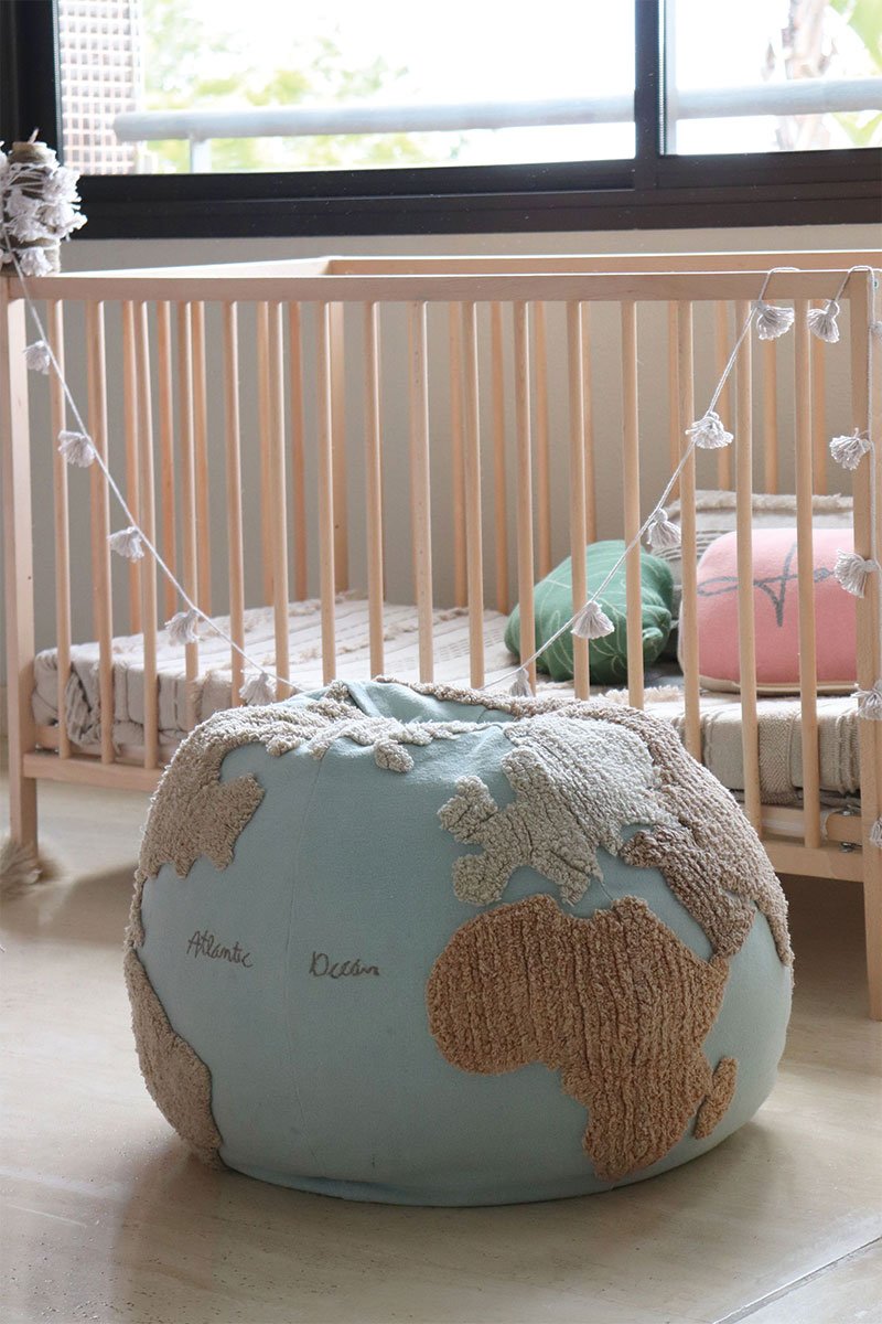 Σφαιρικό, χειροποίητο πούφ από 100% φυσικό βαμβάκι βαμμένο αποκλειστικά με φυσικές βαφές, που το καθιστούν ασφαλές, μαλακό, εύκαμπτο και ελαφρύ. Το προϊόν πληροί όλες τις προδιαγραφές ποιότητας και ασφάλειας για τα παιδιά, ενώ έχει ISO 9001, ISO 14001, ISO 18001 και πιστοποιητικά AITEX. Πλένεται στο οικιακό πλυντήριο και μπαίνει στεγνωτήριο (παρακαλούμε συμβουλευτείτε τους κανόνες πλυσίματος του προϊόντος στην ετικέτα πάνω στο προϊόν).